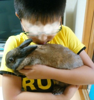 息子達がケージのお掃除をする間、私がクロ様を抱っこしています。